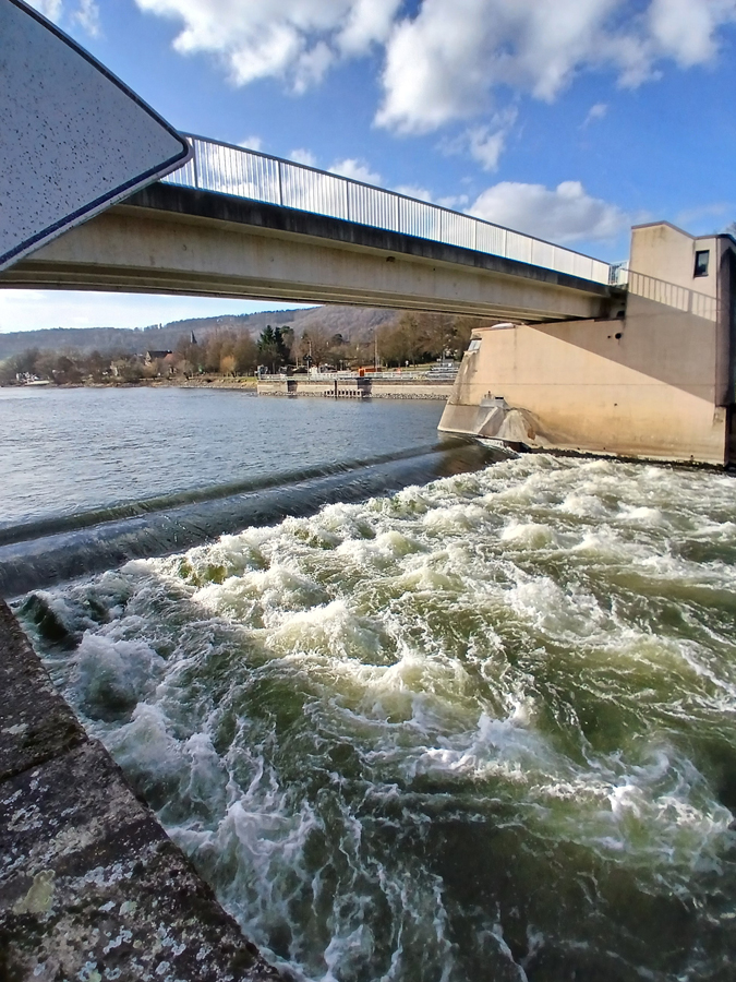 3. Tag (13. 03.): Heute erwartete uns eine Langstrecke von 62 km durchs Weserbergland. Nachdem wir die Boote um eine letzte Schleuse herumgetragen hatten, ging es mit reichlich Strömung die Weser abwärts mit durchschnittlich 10 bis 11 km/h. Nachdem wir die nördlichen Ausläufer der Kasseler Berge hinter uns gelassen hatten, führte uns der mäandernde Fluss an idyllischen Orten wie Bodenfelde, Bad Karlshafen und Beverungen vorbei.