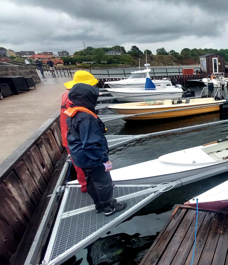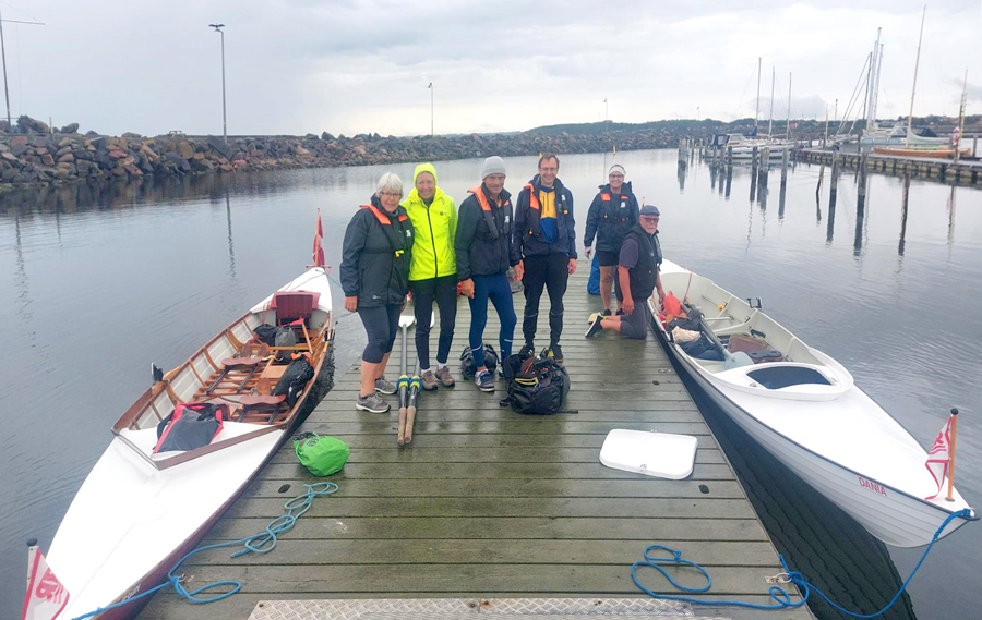 Frühmorgens mit der Nachtfähre auf Bornholm angekommen, stachen Susanne, Monika, Eva Maria, Ralf, Paul und Klaus mit zwei gesteuerten Inriggern vom Rønne Roklub in See Kurs SO. Altwelle vom Vortag und leichter Gegenwind bremsten zunächst die Fahrt. Wenig später zwangen uns Schauerböen zu einem Zwischenstopp in Arnager, wo wir die vorgeheizte Fischersauna dankbar zum Aufwärmen nutzten.
