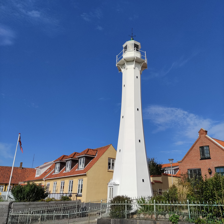 Der Leuchtturm von Rønne. Zum Abschied strahlend blauer Himmel und windstill!