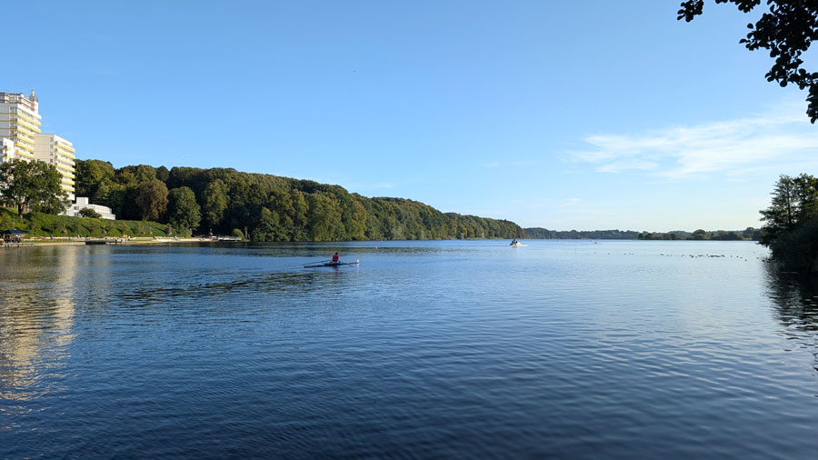 Am Morgen des 13. September verließen wir für einen Tag unsere gewohnte Trainingsumgebung auf der Alster und fuhren nach Segeberg. Den Altersdurchschnitt auf der familiären Regatta hoben wir Hamburger deutlich. Das Wetter wechselte den Tag über von strahlendem Sonnenschein zu Platzregen und zurück und ließ auch ein kurzes aber heftiges Sommergewitter nicht aus.