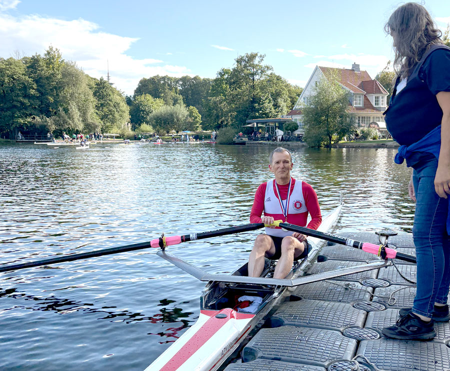 Volker setzte sich als Einzelkämpfer im Männer-Master-Einer durch und gewann gegen die Einer aus dem Preetzer RC und den des RV an den Teichwiesen.