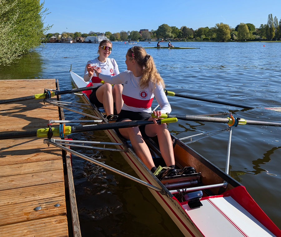 Der sonnigere Sonntag startete vielversprechend: Kaya gewann die erste Abteilung des Rennens im Frauen Doppelzweier. Emma und Flora starteten in der zweiten Abteilung und konnten hier ebenfalls einen Sieg errudern.